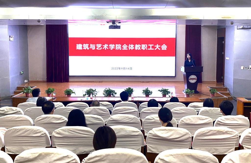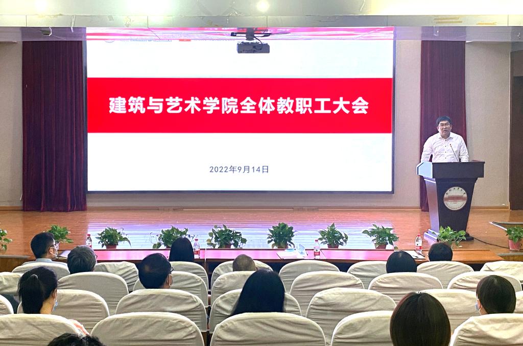 9月14日下午,m88官网2022年秋季学期全体教职工大会在建筑艺术馆负一楼报告厅召开。公司领导班子及全体教职工参加会议。会议由党委书记孙建海主持。