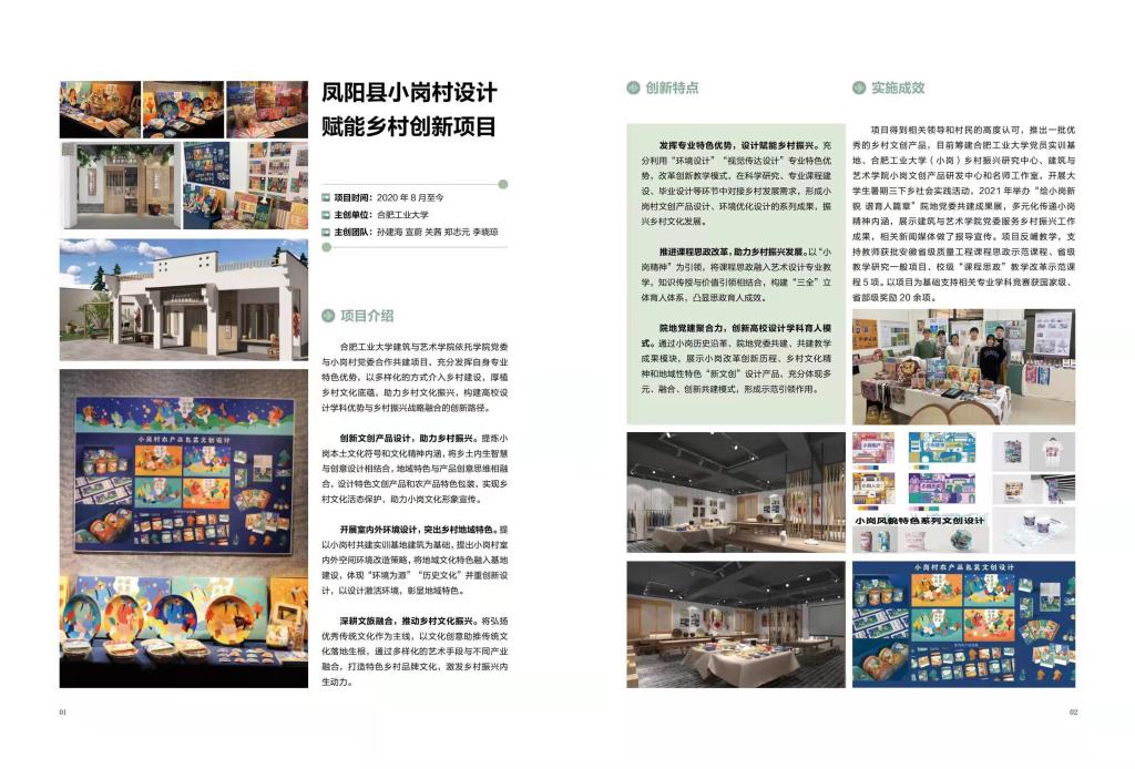 “我为乡村做设计”志愿服务活动,包含乡村设计学术研究、乡村振兴设计竞赛、设计赋能乡村振兴案例征集、乡村振兴领域志愿服务等一系列活动内容,以引导高校师生弘扬传统美德,传承红色文化,宣传乡村文旅,助力乡村振兴。在刚刚结束的2022第十届未来设计师·全国高校数字艺术设计大赛中,主办方征集到一万余件以乡村振兴为主题的设计作品,涌现了一大批为乡村做设计的志愿者。作为“我为乡村做设计”主题活动之一,“全国高校设计赋能乡村振兴创新案例”征集活动也得到了高校的积极响应,共收到近500个申报案例,公司m88官网选送案例《凤阳县小岗村设计赋能乡村创新项目》脱颖而出。案例依托公司党委与小岗村党委合作共建项目,充分发挥设计类专业特色优势,在科学研究、专业课程建设、毕业设计等环节中对接乡村发展需求,以多样化的方式介入乡村建设,形成小岗村文创产品设计、小岗村空间优化设计系列成果,助力乡村文化振兴,构建高校设计学科优势与乡村振兴战略融合的创新路径。