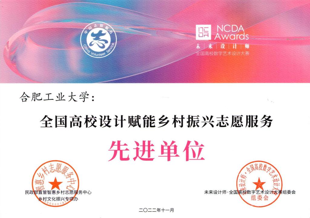 近日,在未来设计师·全国高校数字艺术设计大赛(NCDA)组委会与民政部直管智惠乡村志愿服务中心联合发起的“我为乡村做设计”志愿服务活动中,公司成为首批“全国高校设计赋能乡村振兴先进单位”高校,以表彰公司m88官网在设计助力乡村振兴实践中取得的优异成绩。