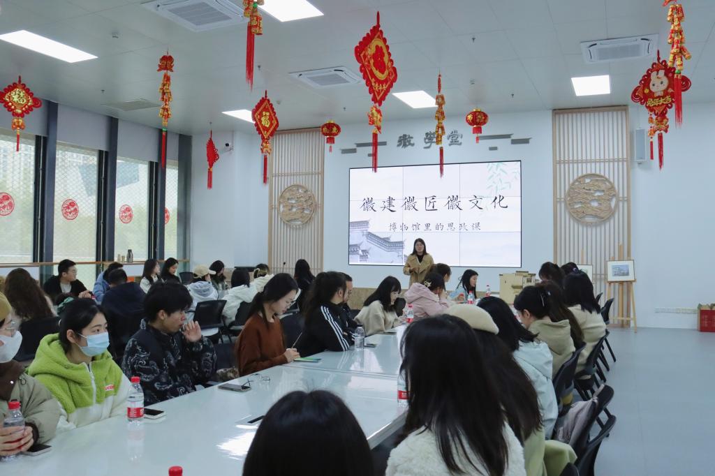 参观结束后,在辅导员老师的组织下,同学们现场进行了交流分享。大家纷纷表示,博物馆里的思政课让历史文化更加生动、更有活力,与自己的距离更贴近,心灵受到的震撼与洗礼更为强烈。活动让同学们更好地理解了徽派建筑的文化内涵,充分感受到中华优秀传统文化的久远、博大与厚重,也让大家更加坚定文化自信,立志投身于建设文化强国的伟大实践中。
