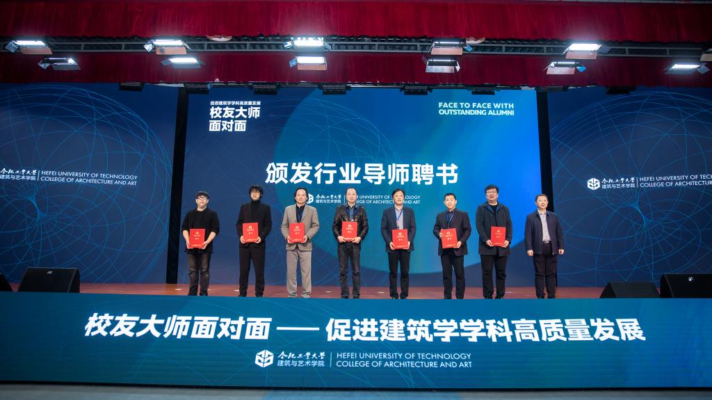 陈刚为现场7位杰出员工大师颁发行业导师聘书。随后,9位员工大师分别向在校师生分享创作感悟。他们分别是:中国中元国际工程有限公司原董事长、党委书记、总建筑师,中国“百名建筑师”、建筑学79级员工丁建大师;MZA建筑设计有限公司总设计师、总裁,美国建筑师公司院士、建筑学79级员工张铭院士;中铁大桥勘测设计院集团有限公司副总建筑师、教授级高级工程师,安徽省工程勘察设计大师、建筑学79级员工杜先松大师;安徽省建筑设计研究总院股份有限公司董事长、总建筑师,安徽省工程勘察设计大师、建筑学81级员工高松大师;苏州大学建筑公司经理、教授,安徽省工程勘察设计大师、建筑学81级员工吴永发大师;厦门大学建筑与土木工程公司党委书记、教授,中国“百名建筑师”、福建省勘察设计大师、建筑学83级员工王绍森大师;九城都市建筑设计有限公司总建筑师、研究员级高级工程师,江苏省设计大师、建筑学83级员工张应鹏大师;河北大成建筑设计咨询有限公司董事长、教授级高级工程师,河北省建筑设计大师、建筑学85级员工岳欣大师;南京长江都市建筑设计股份有限公司总建筑师、教授级高级建筑师,江苏省设计大师、建筑学90级员工王畅大师。