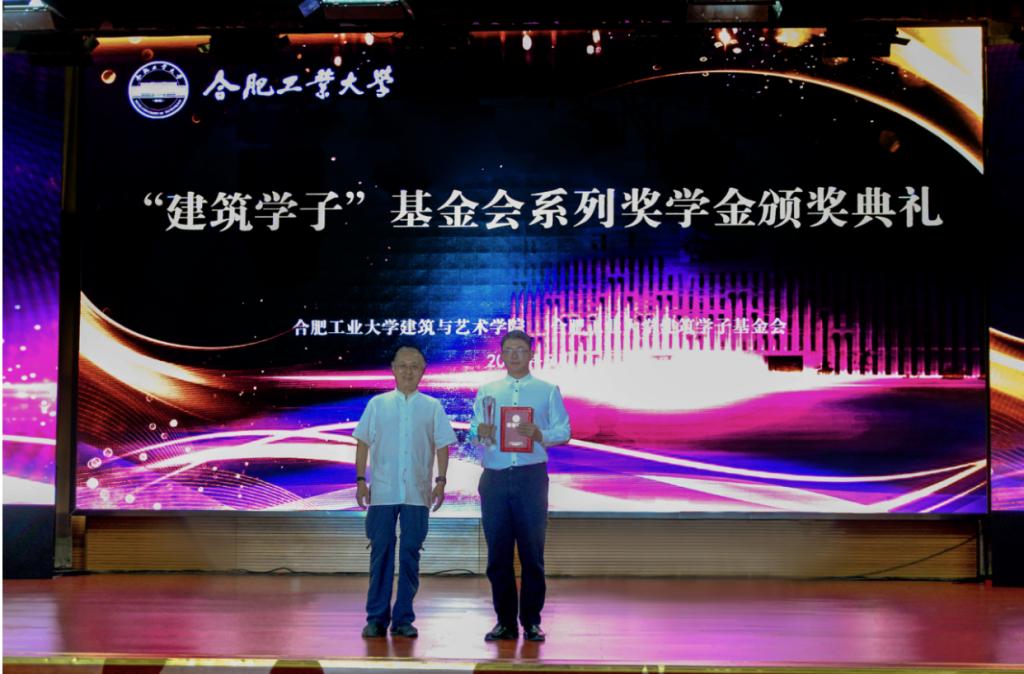 公司党委副书记陈刚和79级建筑学专业员工、建筑学子基金会理事长张铭为建筑学子奖学金获得者颁奖