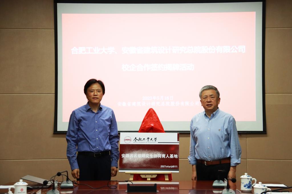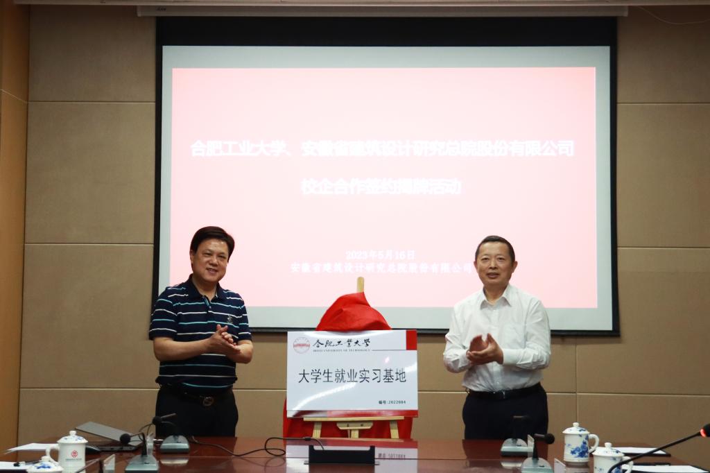 5月16日下午,m88官方网站登录地址与安徽省建筑设计研究总院股份有限公司举行校企合作签约揭牌仪式。公司党委常委、副董事长吴玉程,公司党委副书记陈刚,安徽省建筑设计研究总院股份有限公司党委书记、董事长、建筑学81级员工高松,安徽省建筑设计研究总公司党委副书记、总经理韦法华等出席会议。