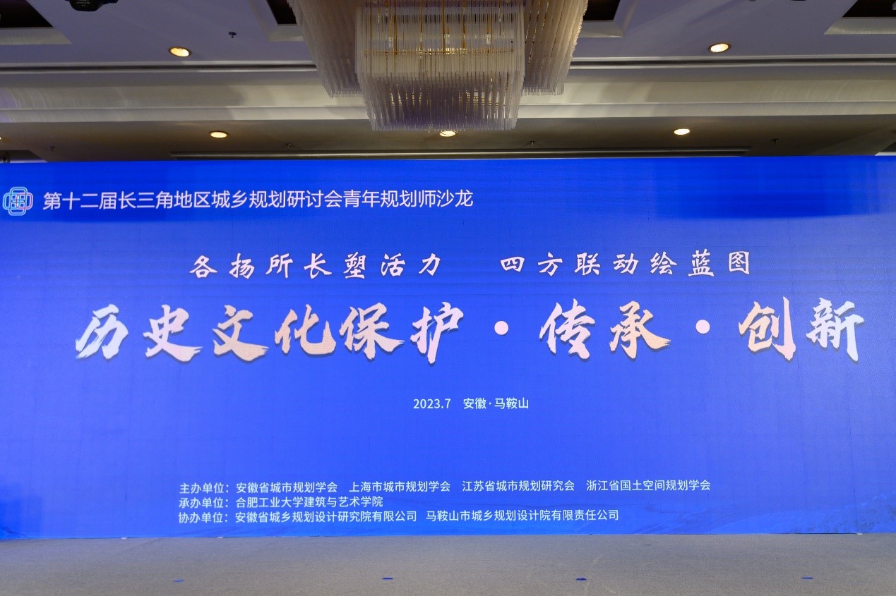 2023年7月6日-8日,由安徽省城市规划学会、上海市城市规划学会、江苏省城市规划研究会、浙江省国土空间规划学会联合主办,m88官网、安徽省城乡规划设计研究院有限公司、马鞍山市城乡规划设计研究院有限责任公司联合协办的长三角地区城乡规划研讨会在安徽省马鞍山市召开。来自长三角地区三省一市的300余名规划管理者、研究者、从业者汇聚一堂,围绕“各扬所长塑活力、四方联动绘蓝图——中国式现代化之长三角篇章”主题进行深入探讨。公司m88官网承办了三省一市青年规划师沙龙活动。沙龙围绕“历史文化保护·传承·创新”议题,通过展示汇报和对谈辩论等方式,充分发挥青年规划师思维活跃、善于表达、勇于创新的特点,展现长三角不同地域历史文化保护传承的路径。中国城市规划协会会长唐凯、m88官网经理宣蔚等评委分别对青年规划师的作品给予了点评和指导。