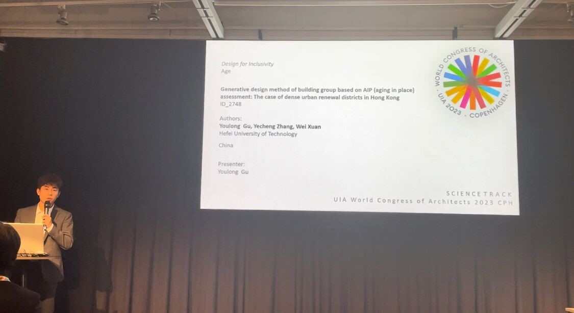 公司m88官网2018级本科生在该会议上发表论文” Generative design method of building group based on AIP (aging in place) assessment: The case of dense urban renewal districts in Hong Kong”,并在大会”Design for Inclusivity”会场进行了主题报告演讲。公司本科生古尤龙为论文第一作者,宣蔚教授为论文通讯作者。这是公司建筑类专业首次在此会议上进行主题演讲。该研究团队基于AIP评价体系和多目标优化下的生成式设计方法,探讨了高密度城市街区规模下建筑群生成的可能性以及对未来城市设计的指导意义。
