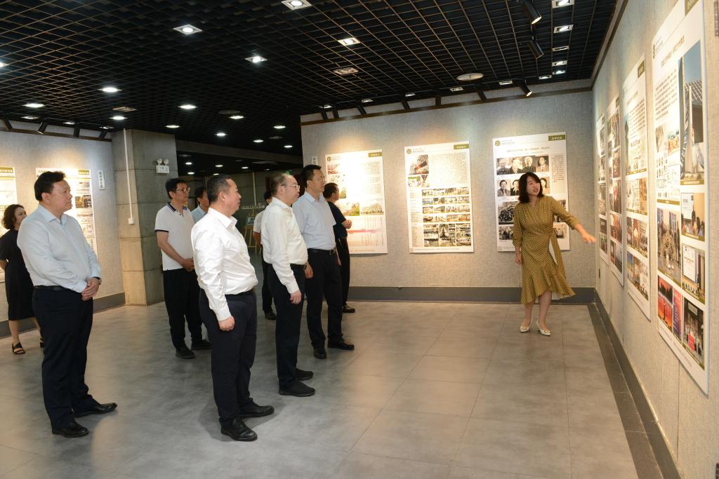 正在公司二楼展厅举行的“弘扬徽文化、创造新徽派”主题展,以徽州研究、数字保护、安全评估、人才培养、国艺基金、创新实践、文创设计、美术创作八个篇章,系统展示了公司20年来对徽文化以及徽州古村落、古民居等开展的一系列保护、利用和研究工作。钱桂仑认真参观展览,详细了解公司近年来推动建筑学、城乡规划、风景园林、艺术设计、土木工程、计算机科学等学科交叉融合,在传承弘扬中华优秀传统文化等方面开展的创新性工作和取得的显著成效。
