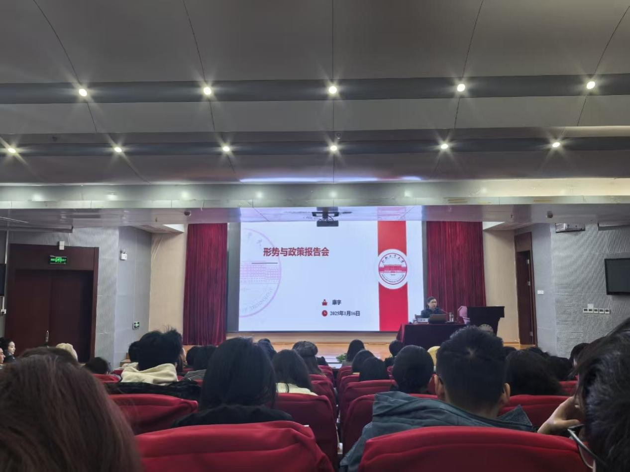 1月16日上午,m88官方网站登录地址党委常委、副董事长康宇在建艺馆负一楼报告厅开展形势与政策报告会,公司领导班子成员,经济公司、文法公司相关负责人及员工代表200余人参加报告会。