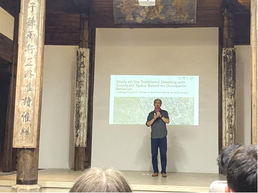 夏校活动聚焦相关主题,在上海、南京、徽州、杭州等地进行联合调研与设计实践活动。通过对都市景观解析、传统村落考察、城乡地景研究及创新设计,探讨人与自然的协同共生。在徽州地区的西溪南笃敬堂,王旭老师为夏校师生分享了《Study on the Traditional Dwelling with Courtyard Space Based onOccupants’Behavior--Taking Pingshan Village in Southern Anhui as an Example》的报告,并与现场师生进行了关于多视角下的徽州地区传统聚落及其空间行为的探讨。