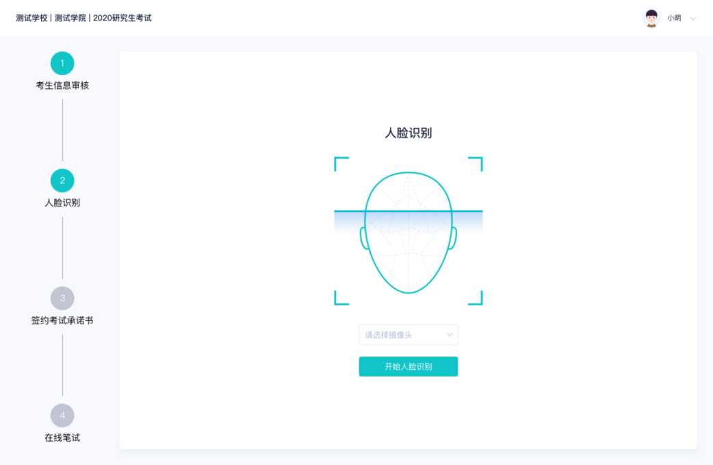 系统对接公安部数据,若认证成功可进入候考区,若认证失败可点击“重试”。若一直认证失败也可进入候考区,但在考官界面会提示“人脸识别认证未通过”,考生须将身份证原件在面试中展示给考官,进行“人证对比”。