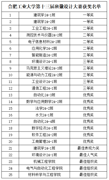 广大班级积极参赛,比赛共收到投稿100余件,经专家评审、线上投票与线下答辩,评出一等奖2个、二等奖4个、三等奖6个、优秀奖8个、最佳表现力奖1个,最佳人气奖1个,优秀组织奖3个,现予以公示,具体名单如下: