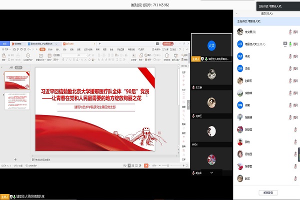 本次学习活动紧紧围绕抗击新型冠状病毒感染的肺炎疫情工作进展,充分利用学习强国、腾讯会议等音频会议平台,通过线上主题会议、集中学习讨论,线下制作加油画报、视频等方式开展,全体党员参加。
