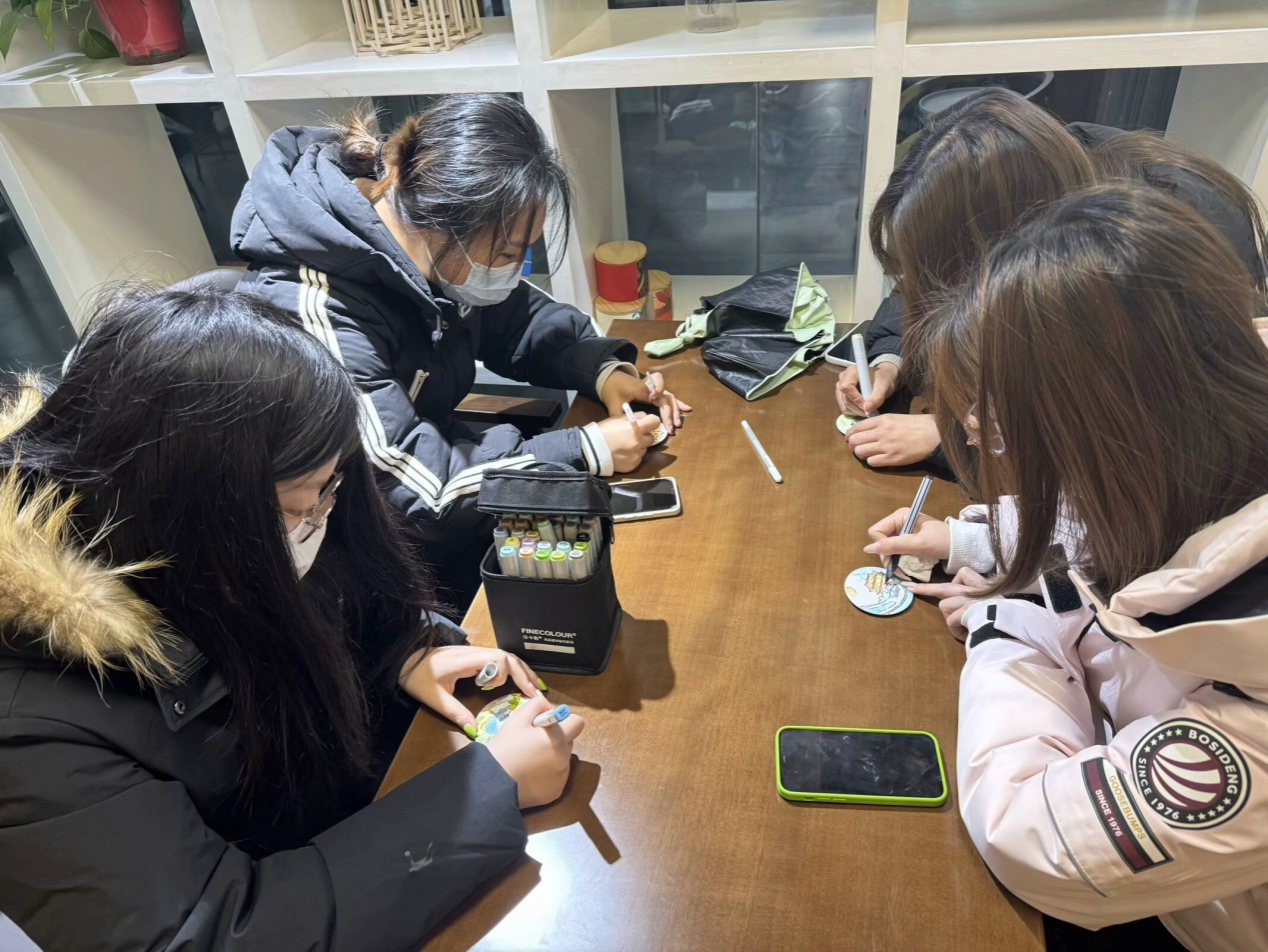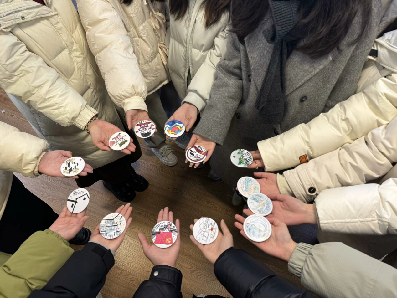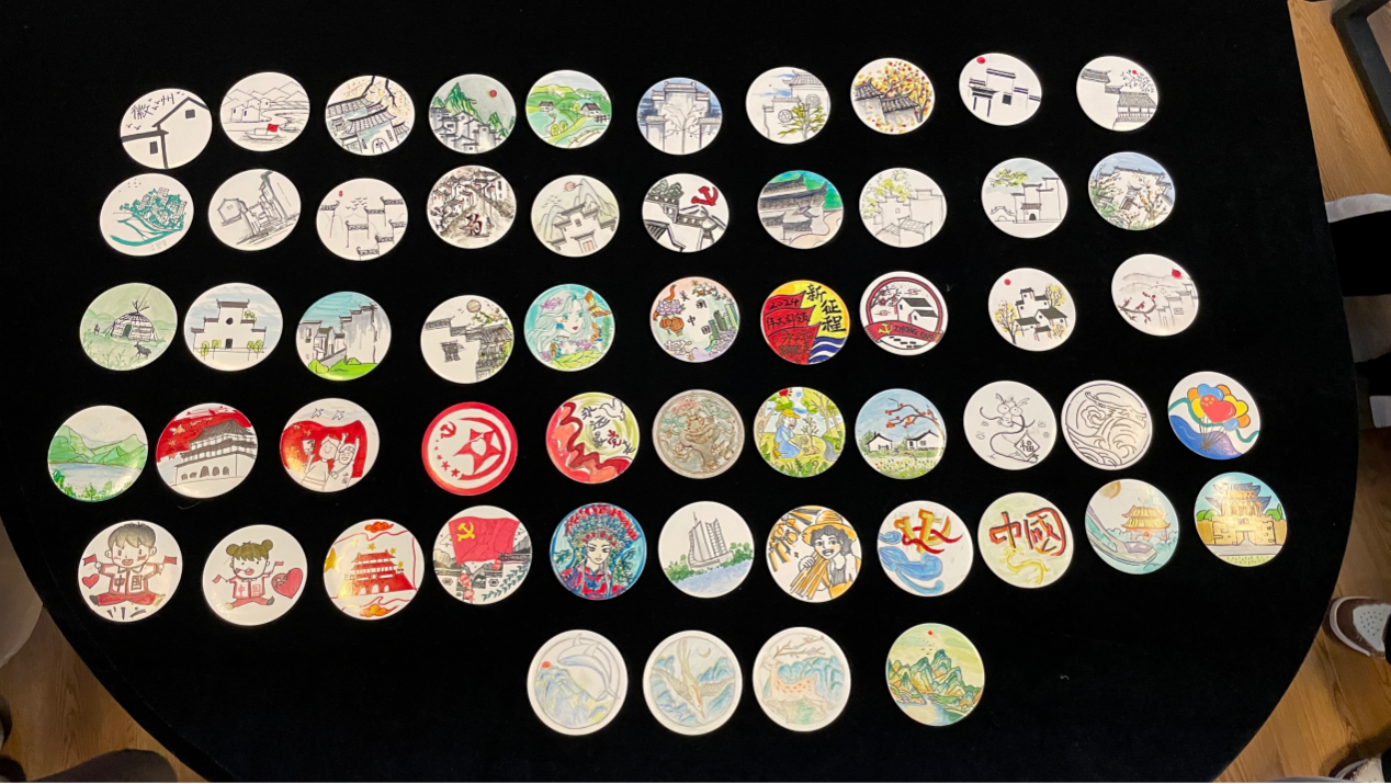 手绘内容围绕“青春心向党”“美丽中国”和“徽韵千年”三个主题展开。活动过程中,同学们认真配色、大胆构图、细致勾勒、娴熟填涂,绘制出一个个精美的徽章作品。一笔一画,皆蕴真情,同学们充分发挥专业特长,在徽章上刻画出心目中的美丽中国和徽州韵味,以这种特殊的方式传达出自己对中国式现代化的所思、所感、所悟。