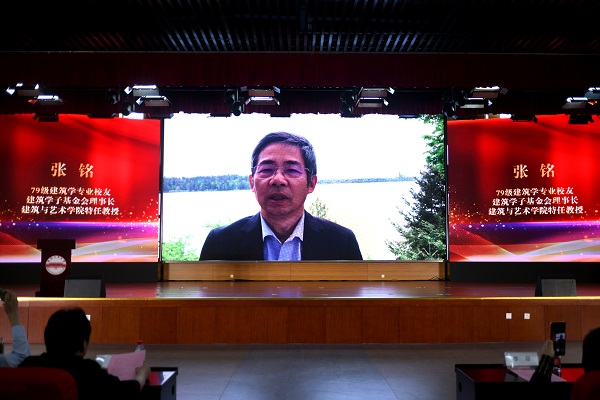 79级建筑学专业员工、该院特任教授、建筑学子基金会理事长张铭发来祝贺视频