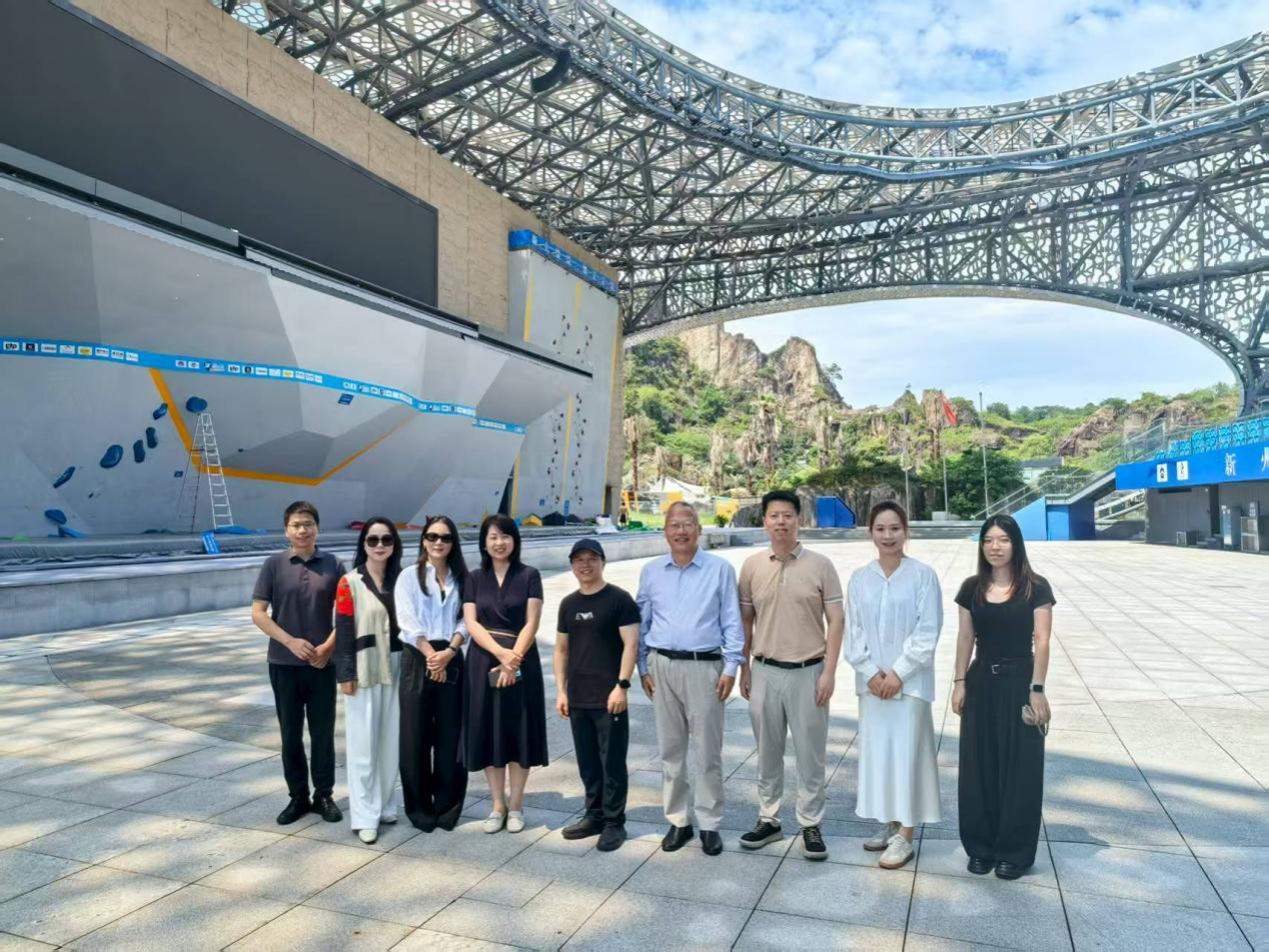 调研交流期间,宣蔚一行还实地参观了黄会明设计的杭州亚运会羊山攀岩馆,专门听取其系列设计成果报告,并就即将捐赠母校杭州亚运火炬达成意向。