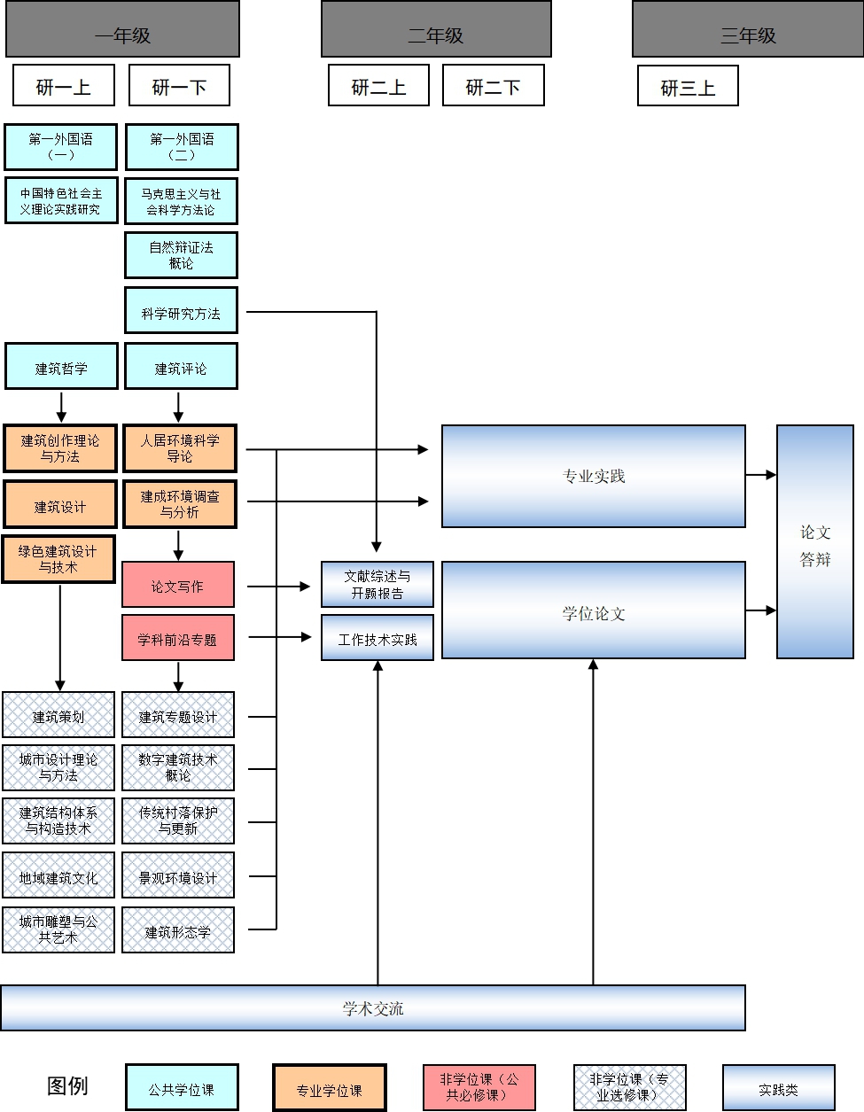 注:跨专业及同等学力研究生需补修本科阶段两门主干课程分别为:《公共建筑设计(2)》,《公共建筑设计(3)》。